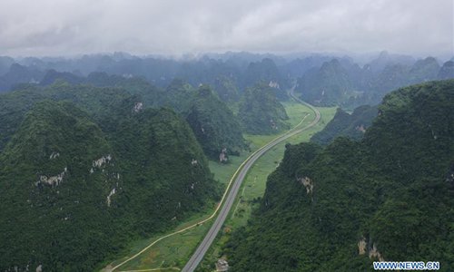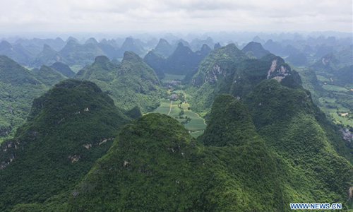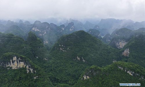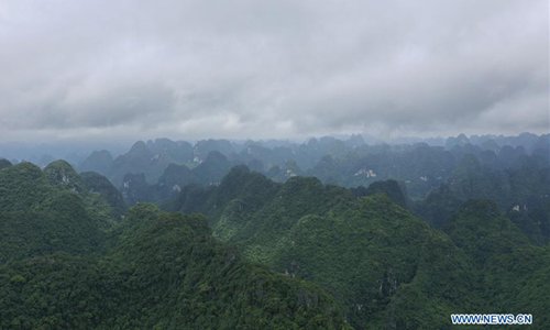 Aerial photo taken on July 5, 2019 shows the scenery of Encheng National Nature Reserve in Daxin County, south China's Guangxi Zhuang Autonomous Region. Photo:Xinhua