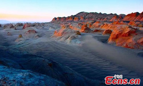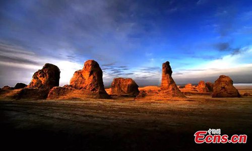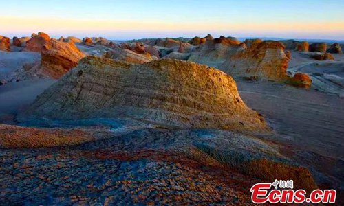 Photos of the Yadan landform, dry areas whose landscape has been formed by wind erosion, at Eboliang in the hinterlands of the Qaidam Basin in Qinghai Province. The area is home to a great variety of spectacular forms - such as the shapes of turtles or cylinders - earning it the name Monster City.Photo: China News Service