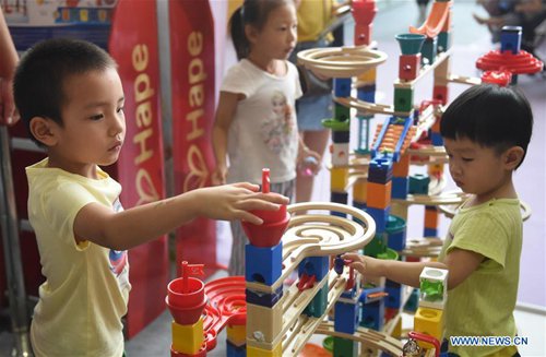 Children play at a toy expo in Beijing, capital of China, July 11, 2019. The four-day expo kicked off here Thursday at the National Agriculture Exhibition Center. (Xinhua/Luo Xiaoguang)