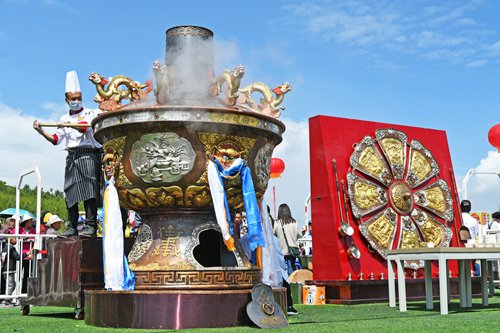 A "mega hot pot" is unveiled at the third folk culture and art festival in Huangzhong county, Northwest China's Qinghai Province, on Friday. Photo: IC