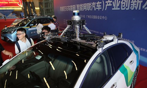 An industry forum on 5G intelligent connected vehicles was held in Huangpu district, Guangzhou, South China's Guangdong Province on Sunday. The district will be a pioneer in the promotion of 5G intelligent connected vehicles. It was announced that China's first demonstration island for 5G autonomous driving applications will be on the International Biotech Island located in the district. Photo: VCG