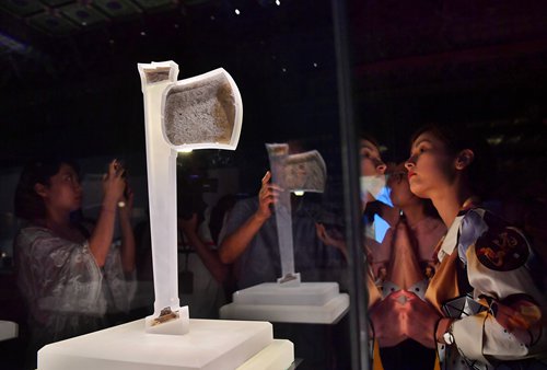 Visitors view ancient artifacts at an exhibition titled Liangzhu and Ancient China: 5,000 years of civilization, being held at the Palace Museum in Beijing on Tuesday. Photo: IC