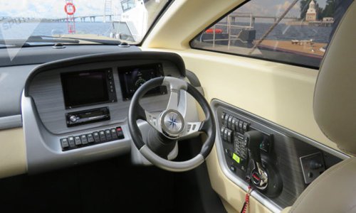 The beautiful boat is trimmed with white leather and is equipped with a climate-controlled interior (this is the interior, not the cabin). It even resembles a Rolls Royce or Maybach limousine. Opening up access hatches and a rather low sloping roof give the boat the appearance of the legendary Mercedes-Benz sports car 300SL (W198 Gullwing). By the way, the interior of the boat is tailored according to individual designs for each specific customer.