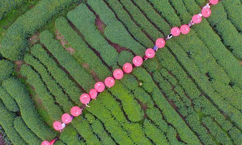 Aerial photo taken on March 26, 2016 shows a tea garden in Bajiang Township in Sanjiang Dong Autonomous County, south China's Guangxi Zhuang Autonomous Region. Located in south China, Guangxi boasts high forest coverage of over 62 percent and various landforms including its picturesque karst mountains. In recent years, following the principle of building ecological civilization, Guangxi authorities uphold green development in agricultural production and poverty alleviation. Meanwhile, the authorities take various measures to improve rural environment including expanding forest coverage and improving infrastructure construction. From 18 to 20 in July, the "Guangxi Day" event was held at the ongoing Beijing International Horticultural Exhibition, where visitors can experience the sheer beauty and remarkable achievements of Guangxi. (Xinhua/Huang Xiaobang)