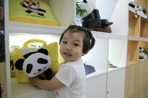 To promote the pandas, the panda house has turned them into cartoon characters and designed souvenirs, such as plush toys, bags and T-shirts. The souvenirs have been hugely popular among visitors at the gift shop.