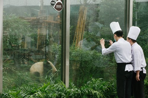 There is also a panda-themed restaurant in the house, where visitors can enjoy food while watching pandas through a big window.