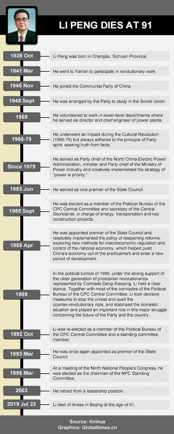 Li Peng, former chairman of NPC Standing Committee, dies at 91