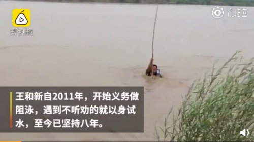 A man from East China volunteers to prevent people from drowning for eight years. Photo: Pear Video