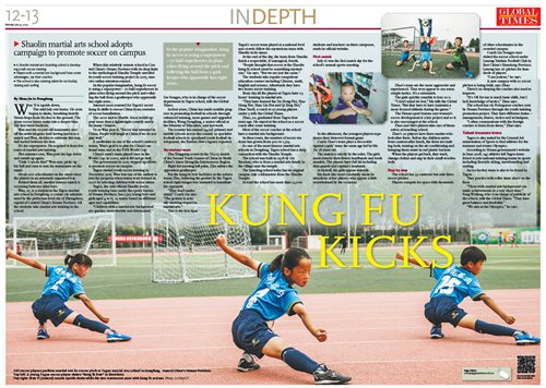 "Children with a martial arts background are quicker, more flexible and determined," Liu Songpu, who is in charge of the soccer department in Tagou school, tells the Global Times.