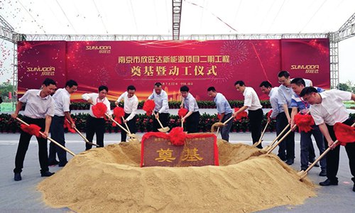 The official stone laying ceremony for the second-term new energy project developed by the domestic technology company Sunwoda took place at the China Fortune Land Development (CFLD)'s industrial zone in Lishui New Industry City in Nanjing, East China's Jiangsu Province on July 22, marking the establishing of the first large-scale power battery plant. The representatives from Nanjing municipal government, CFLD and Sunwoda attended the ceremony.