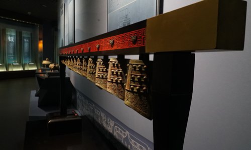 A reproduction of a set of ancient bronze chimes Bronze vessel Photo: Tao Mingyang/GT