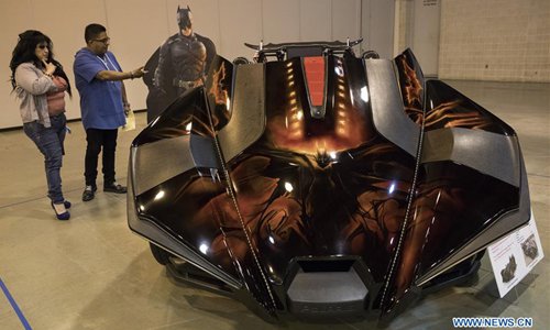 People view a customized Batman Dark Knight-themed Polaris Slingshot at the Omni12 Car Show in Houston, Texas, the United States, on July 28, 2019. The inaugural Omni12 Car Show provided a platform for showing and trading automotive aftermarket products, including tires, body parts, electronics, painting and more. (Photo by Yi-Chin Lee/Xinhua)