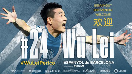 A poster released by La Liga club Espanyol welcomes the arrival of Chinese striker Wu Lei from Chinese Super League side Shanghai SIPG. Photo: Courtesy of Espanyol