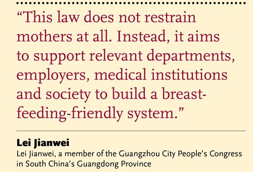"This law does not restrain mothers at all. Instead, it aims to support relevant departments, employers, medical institutions and society to build a breast-feeding-friendly system," he explained.