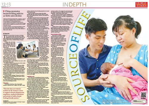 ○ Before the World Breast-feeding Week, Guangzhou, capital of South China's Guangdong Province, pushed forward China's first local legislation of breast-feeding promotion○ China's exclusive breast-feeding rate within the first six months of life was 20.8 percent in 2013, lower than the average level (37 percent) of middle-income and low-income countries in the world: UNICEF○ Vietnam succeeded in promoting breast-feeding by revising the country's labor law to allow mothers longer maternity leave and banning advertisement of breast milk substitutes for infants under 2 years old