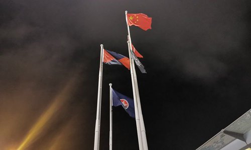 Chinese national flag raised at the Victoria Harbor on Monday night Photo: Yang Sheng/GT