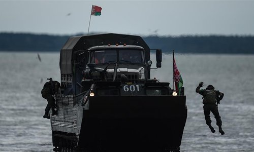 Team of Belarus competes during the "Engineering formula" contest of the International Army games 2019 in Tyumen, Russia, Aug. 10, 2019. The International Army Games 2019 runs from Aug. 3 to 17. (Xinhua/Evgeny Sinitsyn)