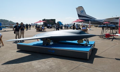 An unnamed flying wing stealth drone developed by Aviation Industry of China (AVIC) on display at Airshow China 2018 in Zhuhai, South China's Guangdong Province in November 2018. Photo: IC