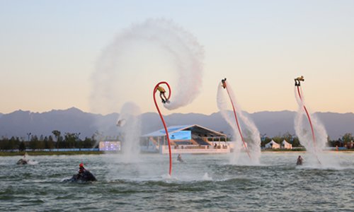 Chinese water acrobats perform stunts for an audience of thousands in Xi'an, Northwest China's Shaanxi Province on Wednesday. Photo: IC