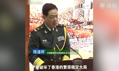 Chen Daoxiang, the commander of the Chinese People's Liberation Army (PLA) Garrison in Hong Kong on Wednesday condemned recent violence on the streets of Hong Kong.