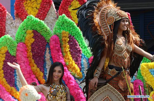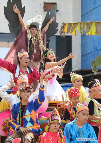 Revelers wave atop a float during the Kadayawan Festival held in Davao City, the Philippines, Aug. 24, 2019. The annual festival is a celebration of life, a thanksgiving for the gifts of nature, the wealth of culture, the bounties of harvest and serenity of living. (Photo: Xinhua)