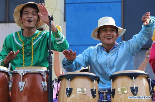 Revelers react atop a float during the Kadayawan Festival held in Davao City, the Philippines, Aug. 24, 2019. The annual festival is a celebration of life, a thanksgiving for the gifts of nature, the wealth of culture, the bounties of harvest and serenity of living.(Photo: Xinhua)
