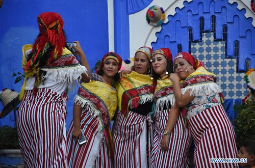 Women in traditional costumes pose for photos in an alley in Chefchaouen, Morocco, on Aug. 24, 2019. Chefchaouen is a tourist destination in northern Morocco, known as Morocco's "blue city" for its blue walls and alleys. (Photo: Xinhua)