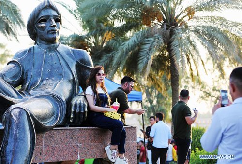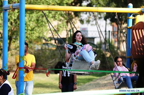 Iraqi youth enjoy the carnival of peace in Baghdad, Iraq, Aug. 24, 2019. Iraqis attend the ninth edition of the annual Baghdad City of Peace Carnival at Abu Nuwas gardens in Baghdad.(Photo: Xinhua)