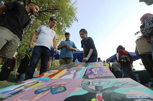 Iraqi artists display artworks during the peace carnival in Baghdad, Iraq, Aug. 24, 2019. Iraqis attend the ninth edition of the annual Baghdad City of Peace Carnival at Abu Nuwas gardens in Baghdad.(Photo: Xinhua)