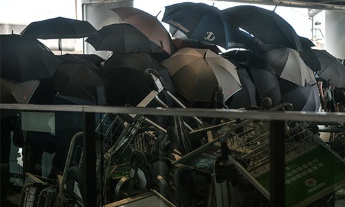 At around 3:30 pm, Global Times reporters spotted a seriously traffic jam at Tsing Ma bridge which links the Hong Kong Island and the airport.