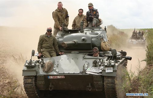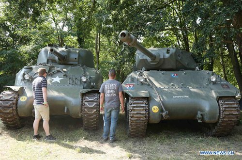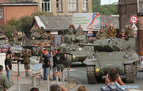 Tanks are seen during a parade to mark the 75th anniversary of the liberation of Brussels in Mons, Belgium, on Sept. 1, 2019. The allied forces liberated Brussels from German occupation in 1944 during World War II.(Photo: Xinhua)