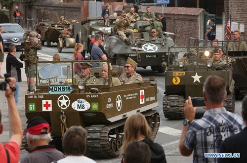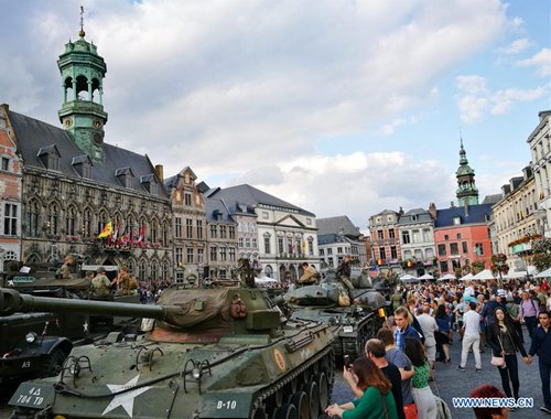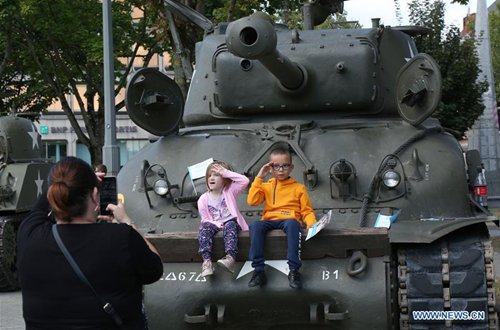 People visit an exhibition of military vehicles during an event to mark the 75th anniversary of the liberation of Brussels in Mons, Belgium, on Sept. 1, 2019. The allied forces liberated Brussels from German occupation in 1944 during World War II. (Photo: Xinhua)