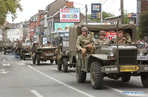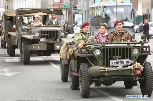 Military vehicles are seen during a parade to mark the 75th anniversary of the liberation of Brussels in Mons, Belgium, on Sept. 1, 2019. The allied forces liberated Brussels from German occupation in 1944 during World War II. (Photo: Xinhua)