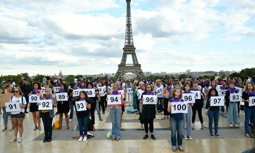 A crowd gathers on Trocadero square in front of the Eiffel tower in Paris, France during a demonstration called by the "Nous Toutes" feminist organization to denounce the 100th feminicide of the year, on Sunday. In 2018, the Ministry of the Interior had identified 121 feminicides. Photo: IC