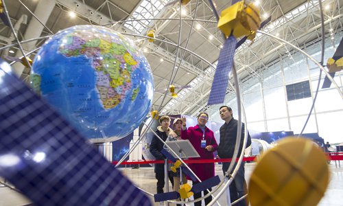 Visitors look at a model of the BeiDou Global Navigation Satellite System in Nanjing, East China's Jiangsu Province. File photo: VCG