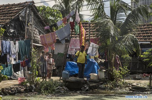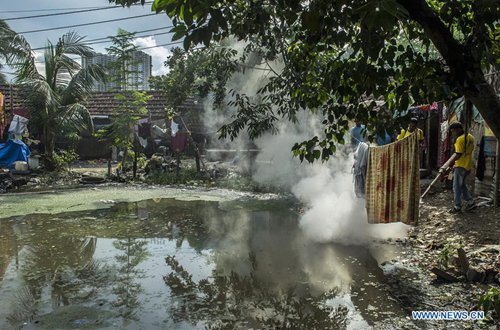 A staff member from local health department fumigates a settlement to kill mosquitoes and larvae to prevent mosquito-borne diseases in Kolkata, India, on Sep. 2, 2019. (Photo: Xinhua)