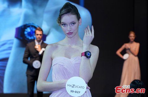 Models show watches during the 38th Hong Kong Watch and Clock Fair at Hong Kong Convention and Exhibition Center in south China's Hong Kong, Sept. 3, 2019. (Photo/China News Service)
