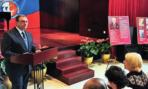 The Russian Embassy in China and the Russian Cultural Center in Beijing jointly organizes the event in Beijing on September 4, commemorating the end of WWII and the 74th anniversary of the victory of the Chinese People's War of Resistance against Japanese Aggression (1931-45). Dmitrii Lukiantsev, Charge d 'affaires of the Russian Embassy participated in the event and gave an opening speech. Photo: Yin Yeping/GT