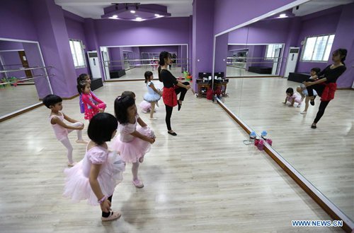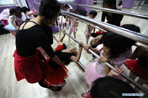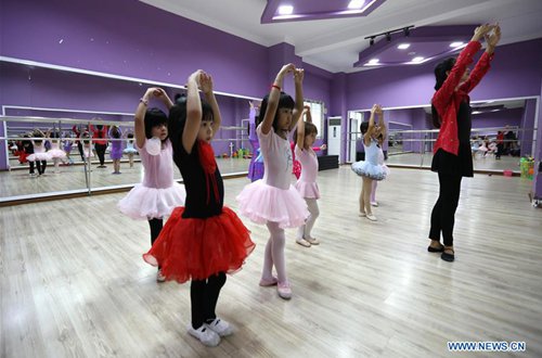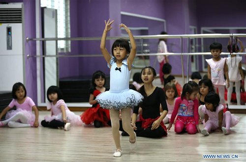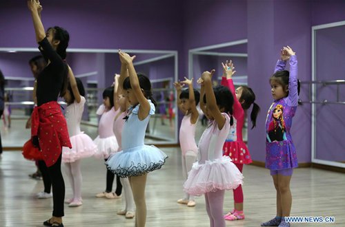 Children practice ballet dance at the Myanmar Ballet School in Yangon, Myanmar, Sept. 7, 2019. Myanmar ballet school has been offering ballet classes for children and adults from both home and abroad. (Photo: Xinhua)