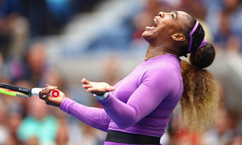 Serena Williams reacts during her women's singles final match against Bianca Andreescu at the US Open on Saturday in New York City. Photo: VCG