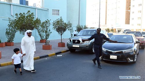 A policeman facilitates traffic in front of a school in Hawalli Governorate, Kuwait, on Sept. 8, 2019. Thousands of students in Kuwait returned to school on Sunday as a new school year began. (Photo: Asad/Xinhua)