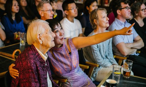 Isabel Crook (left) and Fu Han attend the screening of Isabel Brown Crook: An Anthropologist in China - Childhood Memories from Bailuding in Beijing on August 20. Photo: Li Hao/GT