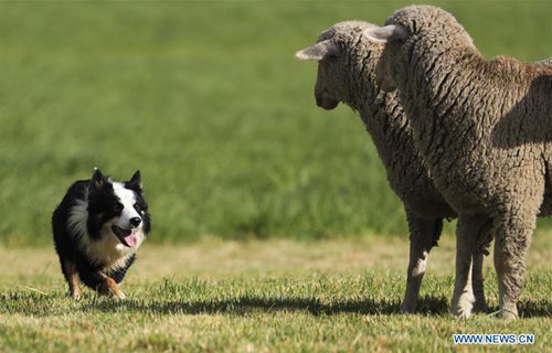 A sheepdog controls sheep during the National Sheepdog Finals held in Carbondale, Colorado, the United States, Sept. 11, 2019. More than 200 sheepdogs attend the finals, which will last till Sept. 15. (Photo: Xinhua)