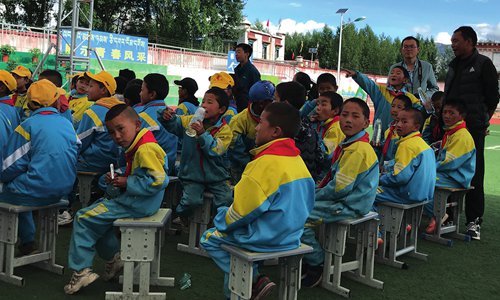 Students in Karze Township, Tibet Autonomous Region, attend a grassland cultivation celebration. Photo: Yang Kunyi/GT