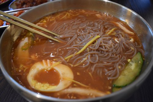 naengmyeon can be made in just 10 minutes, which is very convenient for the hungry customer in a hurry.