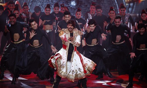 Bollywood actor Ranveer Singh (center) performs during the 20th International Indian Film Academy (IIFA) awards ceremony in Mumbai, India, on Wednesday. Photo: IC