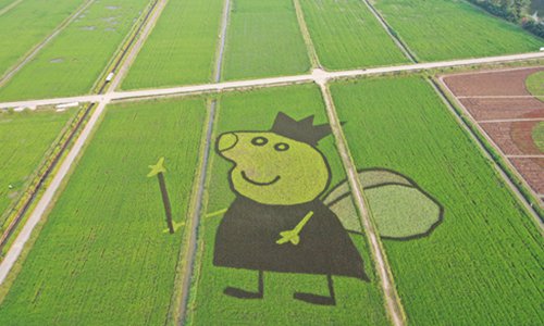 A pattern of Peppa Pig is displayed in a rice field in a village in Zhuhai, South China's Guangdong Province on Wednesday. Photo: VCG