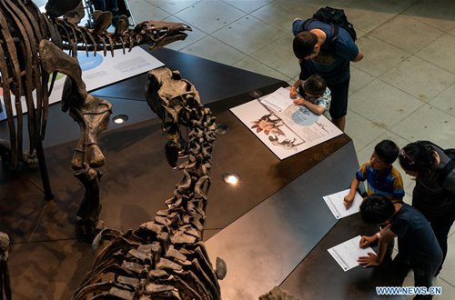 People attend the 4th annual Dino Fest at the Natural History Museum of Los Angeles, Los Angeles, the United States, Sept. 21, 2019. The two-day festival kicked off here Saturday, attracting hundreds of dino enthusiasts of all ages to the Museum. (Photo: Qian Weizhong/Xinhua)