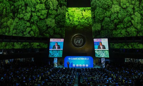 UN Secretary-General Antonio Guterres speaks at the Climate Action Summit on Monday in New York City. Photo: VCG