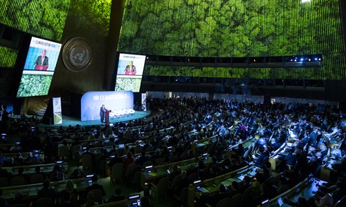 UN Secretary General Antonio Guterres speaks at the UN Climate Action Summit at the United Nations Headquarters in New York City on Monday local time. The summit yielded plans to increase financing for green, livable cities and to promote sustainable infrastructure and transport. Photo: AFP